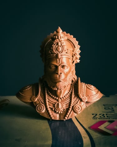 Handcrafted 3D-printed statues of Hanumanji and Ramji, blending tradition with precision.